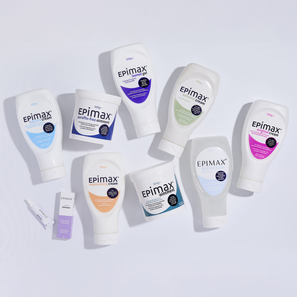 Take control of your dry skin. Choose from a range of emollients (you may know them as moisturisers) and a body wash to help relieve the symptoms of eczema, psoriasis and other dry skin conditions. They come in a variety of formulations, so you can find one that works for your symptoms, preferences and lifestyle. Unlock comfort for your skin: discover your EPIMAX®.